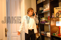 Lacalle sigue paso a paso a Blake (Jake) en el restaurant escuchando todo lo que sucede en la mesa.